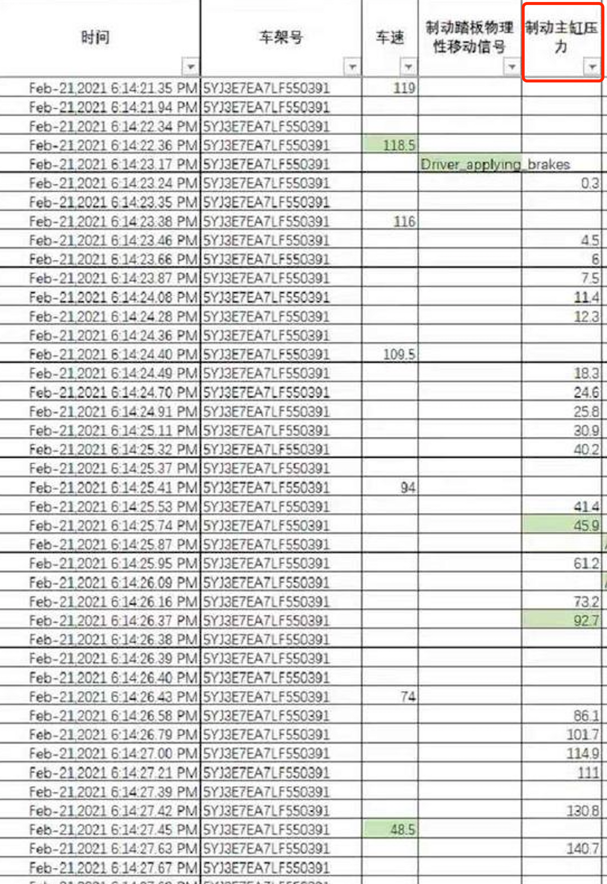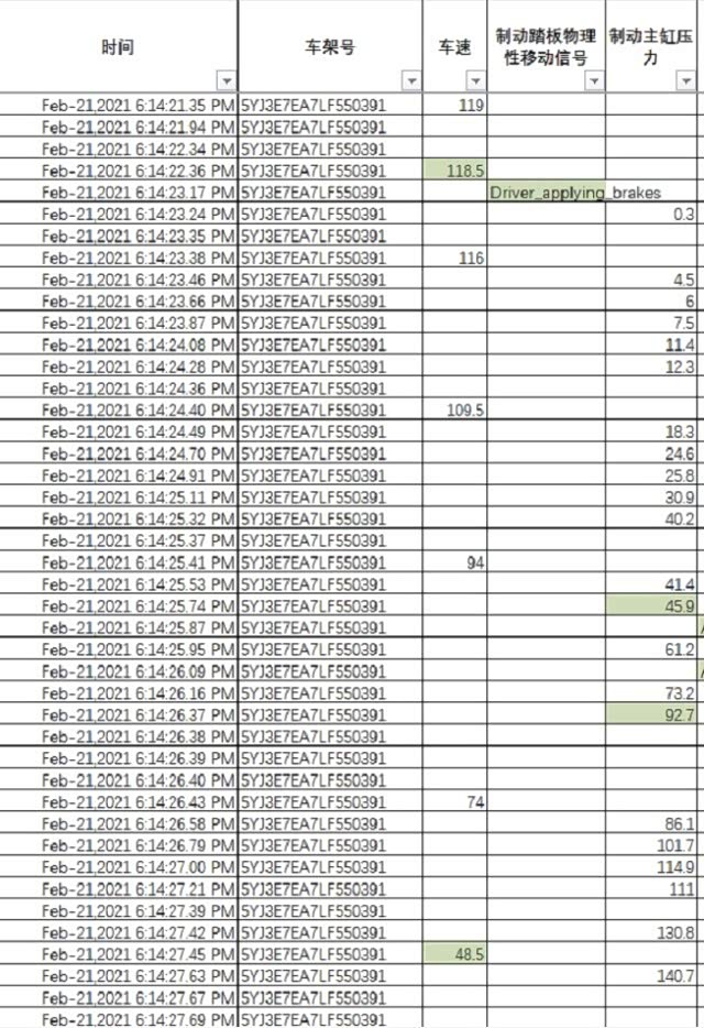 第二,通道少。很明显,此次公布的几项数据足够的单一,其中分析制动原理最重要的一项没有出现,那就是刹车行程。关于刹车行程信号,可以很好的反馈出驾驶员在发生事故时有没有踩下制动踏板的动作。