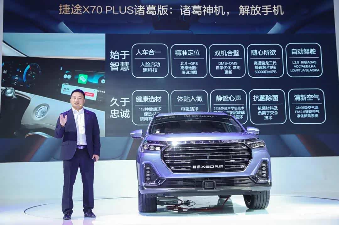 拿上海车展的C位车型 捷途X70 PLUS诸葛版来说,产品的两大特性就是智慧和忠诚,搭配的智能化配置都是和博世、华为、腾讯合作打造的,忠诚则是反应在动力、安全以及健康上,这款车替消费者都考虑得比较周到。除了全系标配博世L2.5级自动驾驶功能,全速域自适应巡航、碰撞预警、主动刹车、并线辅助等主动安全功能,还精选118种健康环保材料来打造健康舒适座舱。