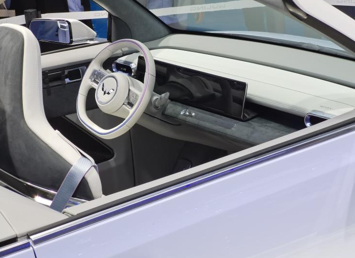 内饰方面,新车和现款宏光MINI EV截然不同,无论是用料还是设计感都明显好了不少。中控台布局简约有层次,一块悬浮式贯穿双联屏比较有科技感,而且预计会搭载不少智能网联功能。整体配色以黑白灰为主,清新素雅,与整体设计相得益彰,也比较合年轻人的审美口味。此外,新车座椅后面配备了防滚架,并加强了A柱,保证一定的安全性。