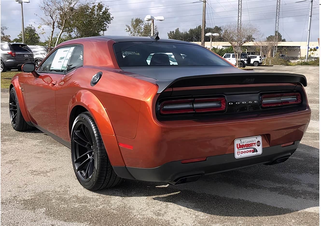外观方面,新车延续了挑战者家族的设计语言的基础上,新加了宽体套件,如:轮眉位置的88.9mm加宽等等。前脸采用中网进气格栅的设计,并做了熏黑处理。还在格栅上嵌入了“ SRT”和“红色恶魔”的专属标识。整个外观设计给人硬朗、具有力量感的视觉感受。另外,新车提供了很多不同的配色方案以及拉花设计,满足车迷们的各种选择。