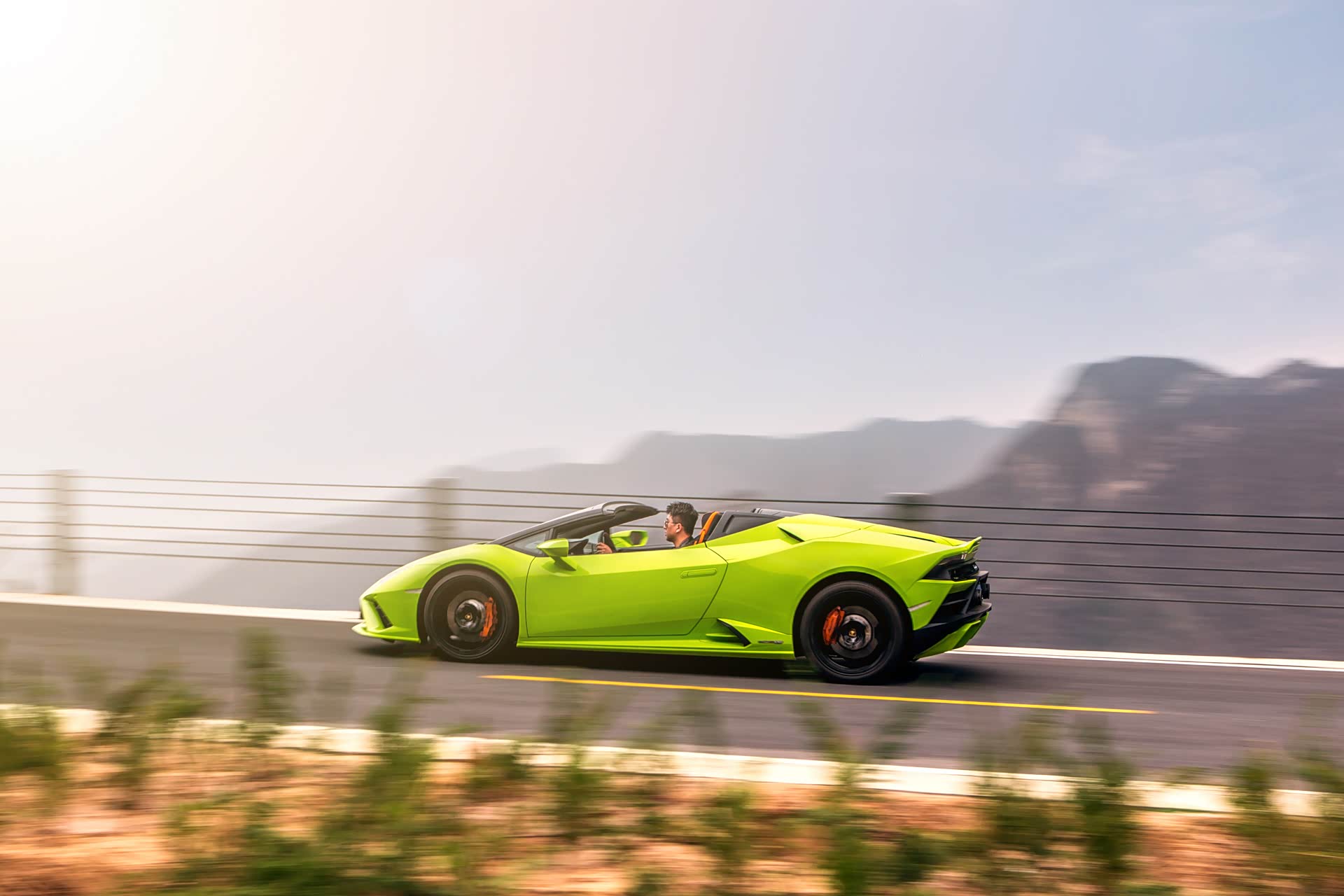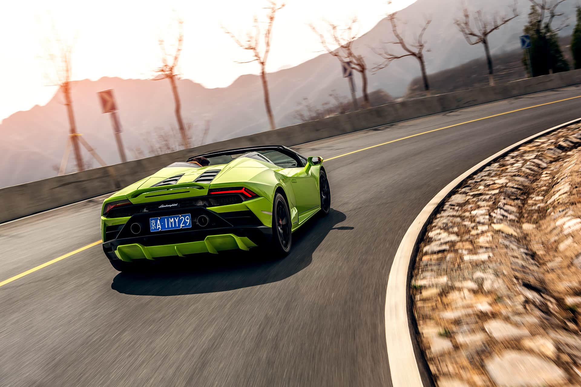 随着对于HURACÁN EVO RWD SPYDER的了解逐渐深入,各种看不到尽头的弯道以及骤然上升或下降的路面也开始持续性地向我们发起挑战,绷紧的神经和臀部为每次踩下刹车的强力后盾。CORSA模式下紧绷的悬架系统几乎是把一整条路面抬到了我的眼前,速度越快,我就与路面越近,恨不得一点不落地掉进柏油路面中的每一处坑洼之中,然后再被无情地拔起,周而复始。可能你会觉得这是一种折磨,但是我却意外地感受到了一种无与伦比的参与感。可以说从神经元发出的每一条指令,都会瞬间在车辆悬架、转向中得到反馈。也正是因为如此,即便手心出汗、双脚颤抖,我也从未感觉到一丝恐怖,或许我已完全地投入其中,只是一种对生的希望,我知道,只要你愿意聆听HURACÁN的呼唤,一切都会尽在掌控。我说这些不是为了彰显自己的英雄气概,而是因为HURACÁN会准确听从你每一次对方向盘微小的调整、动力的爆发,以及底盘对路面的每一次直接且精准的反馈,都是在耐心地引导你发送出正确的指令。