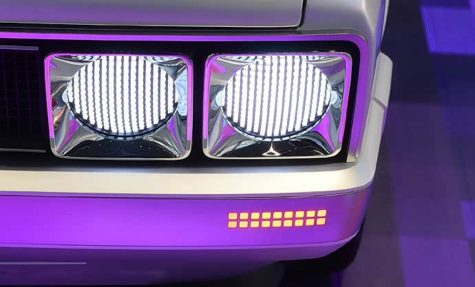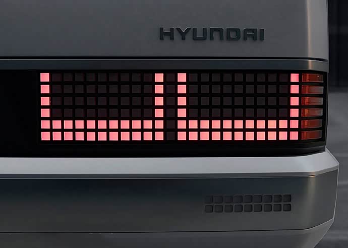 最典型的例子就是前后大灯,不管是大灯,转向灯,还是刹车灯,使用了一颗颗的矩形的LED灯珠的设计,在现代汽车最新的ioniq5上也是这种设计。既复古,同时又有科技感。