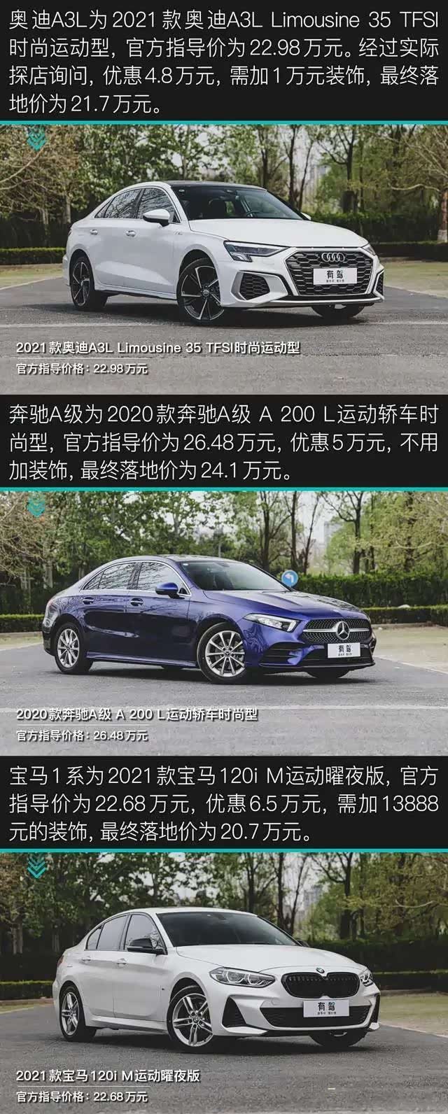 如果您是一位年轻时尚的小姐姐,初入社会的年轻男士。那我很推荐你选择奔驰A级;不管你是年轻的单身男女,还是新晋的三口之家,A3L都能满足到你的用车需求;而宝马1系,除非您是宝马忠实客户或者操控狂热者,那么……