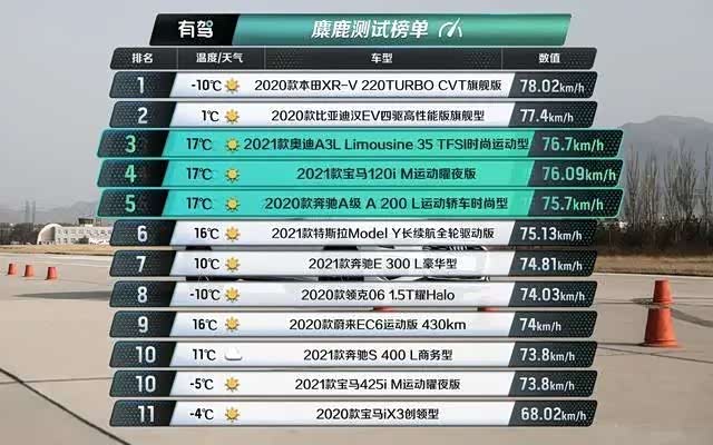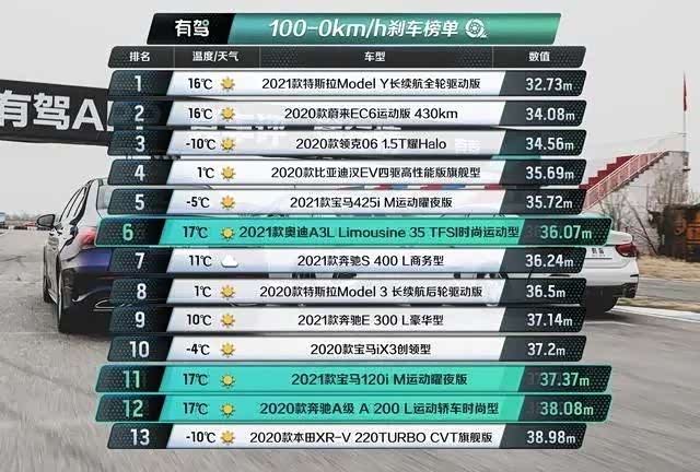 3、100-0km/h刹车测试