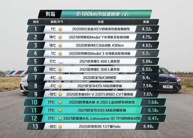 1、0-100km/h加速测试