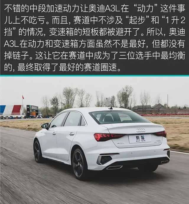 看到这样的成绩,相信您也懂得了什么才是最重要的。那就是动力、刹车和轮胎,这三样素质主要决定了车辆的出弯、入弯和弯中的表现。首先我们来分析奥迪A3L的赛道表现。