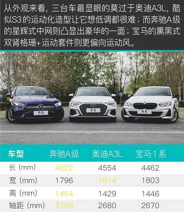 从静态表现来看,奔驰A级优秀的设计能够俘获大多数人的芳心,奥迪A3L的帅气外观也不缺乏铁杆粉丝。而宝马1系,相信只有极致的宝马品牌拥趸或者运动少年才能接受。