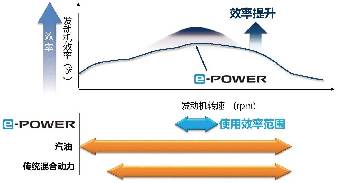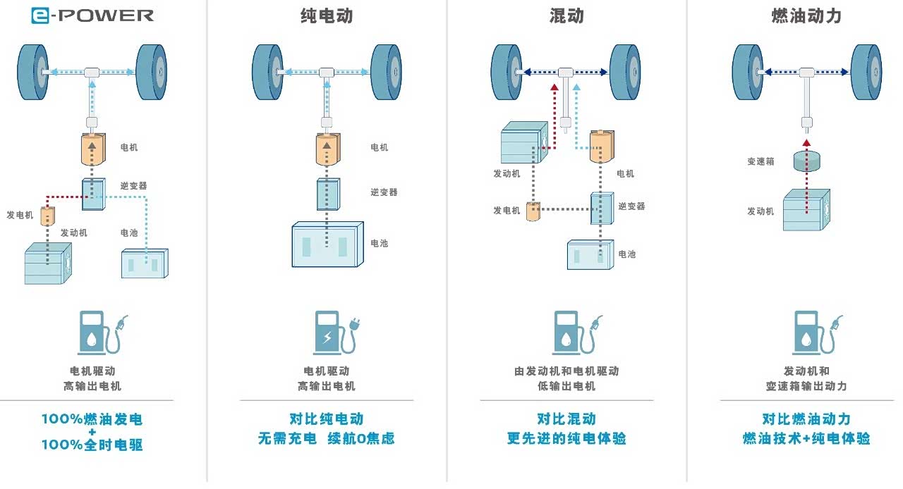 日产e-POWER采用全电驱动,发动机仅用于在特定工况下发电;