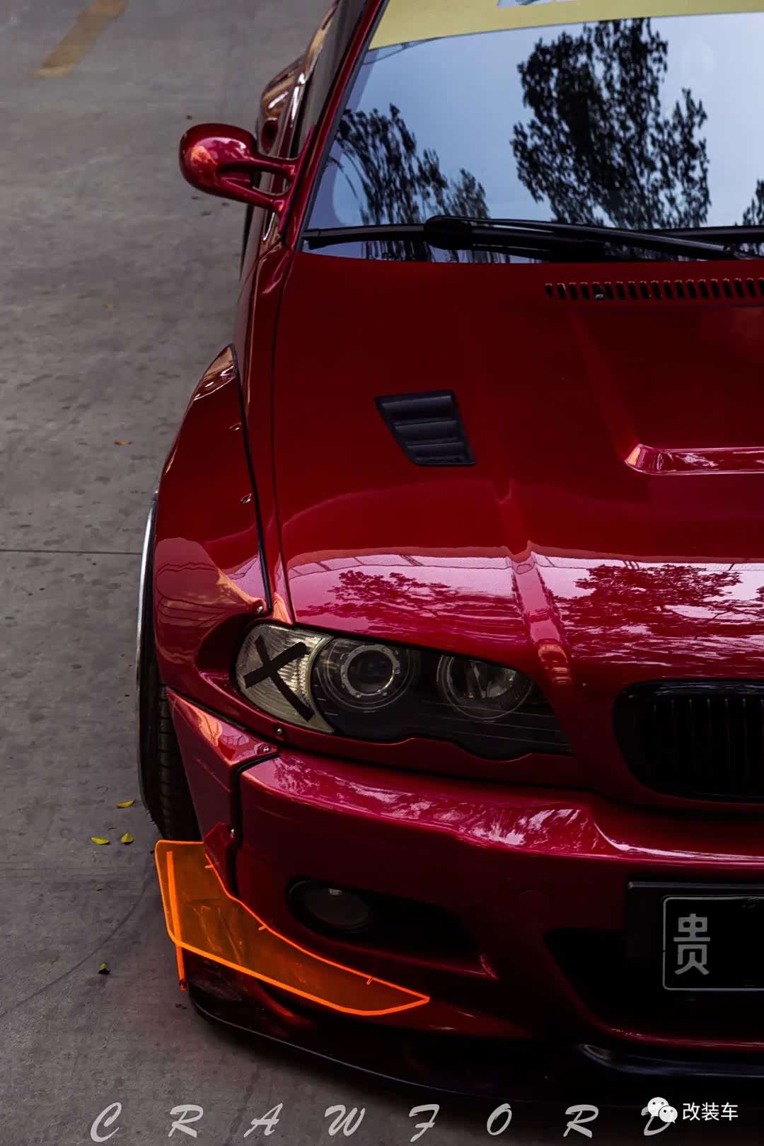 DIY机盖也是另一大亮点,从双肾中网开始往后隆起,充满肌肉感的线条跟E46非常搭配,跟下方的M3前杠组合到一起,也是蛮和谐的。