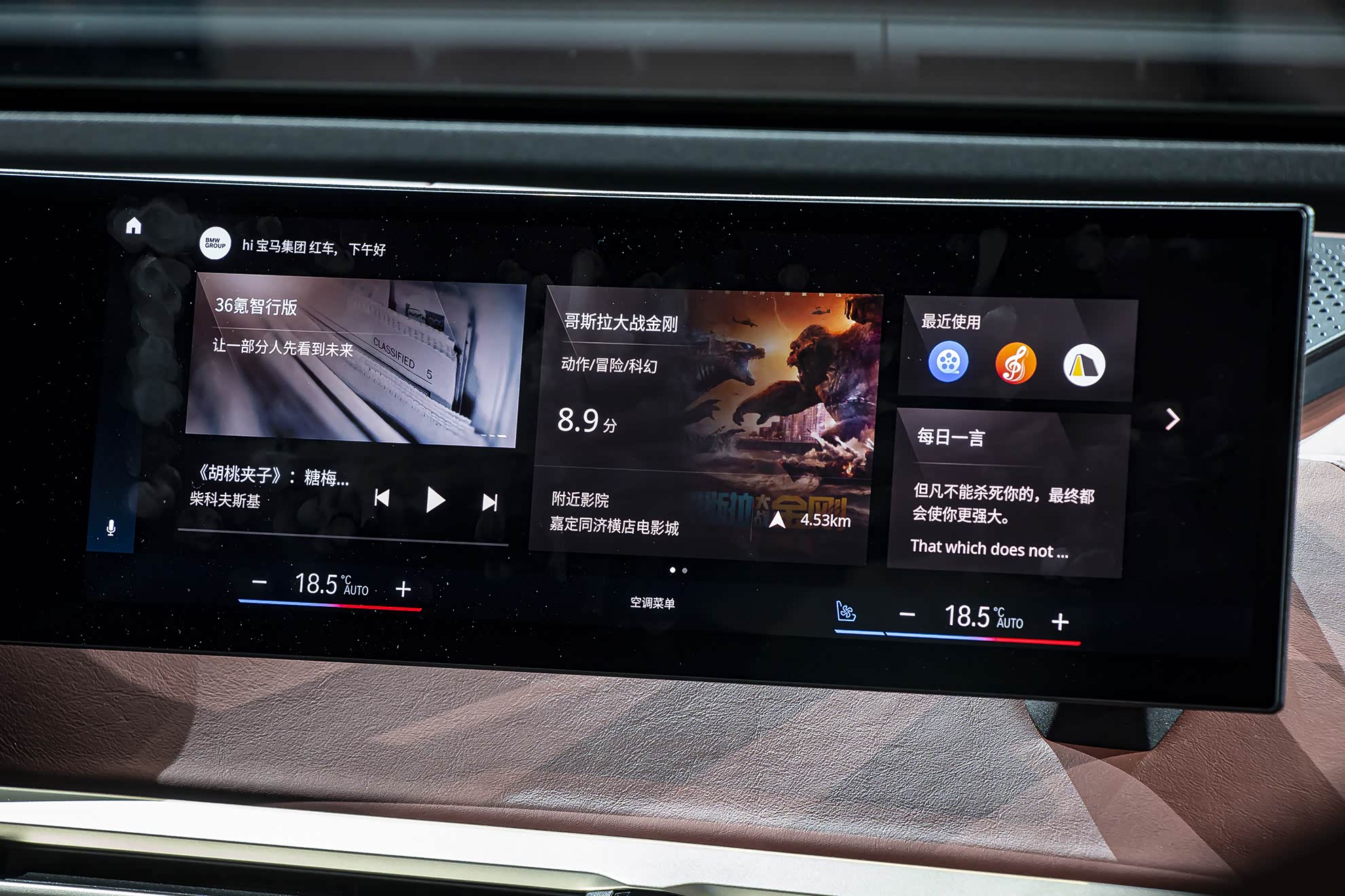 音响部分提供了4D低音体验功能,配合宝华韦健音响和隐藏在前排座椅靠背内的扬声器,播放音乐的过程中,乘员能感受到后背传来的振动。虽然坐在车里,但视觉、听觉、触觉体验的代入感,会让你有身处音乐会现场的错觉。无论驾驶还是娱乐,iX都会给你沉浸式体验。未来宝马还将推出更多的音/视频素材,借助车内硬件为用户来带更震撼的视听盛宴。