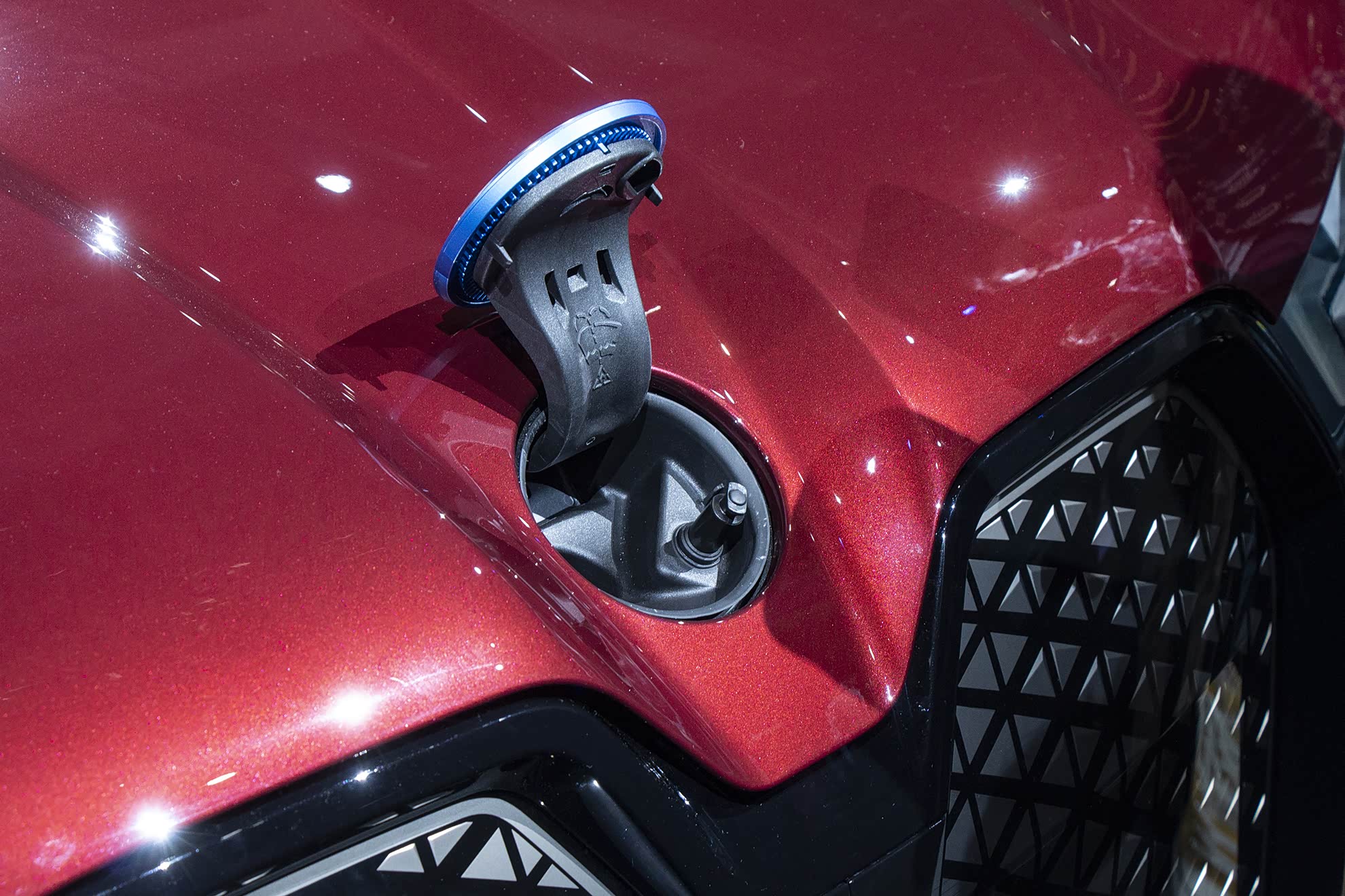 告别发动机的iX,无需用户时常关注发动机舱的油油水水,所以非检修人员是没法打开“引擎盖”的。玻璃水加注口在车头LOGO下方,除了充电这可能是唯一需要你动手的地方了。