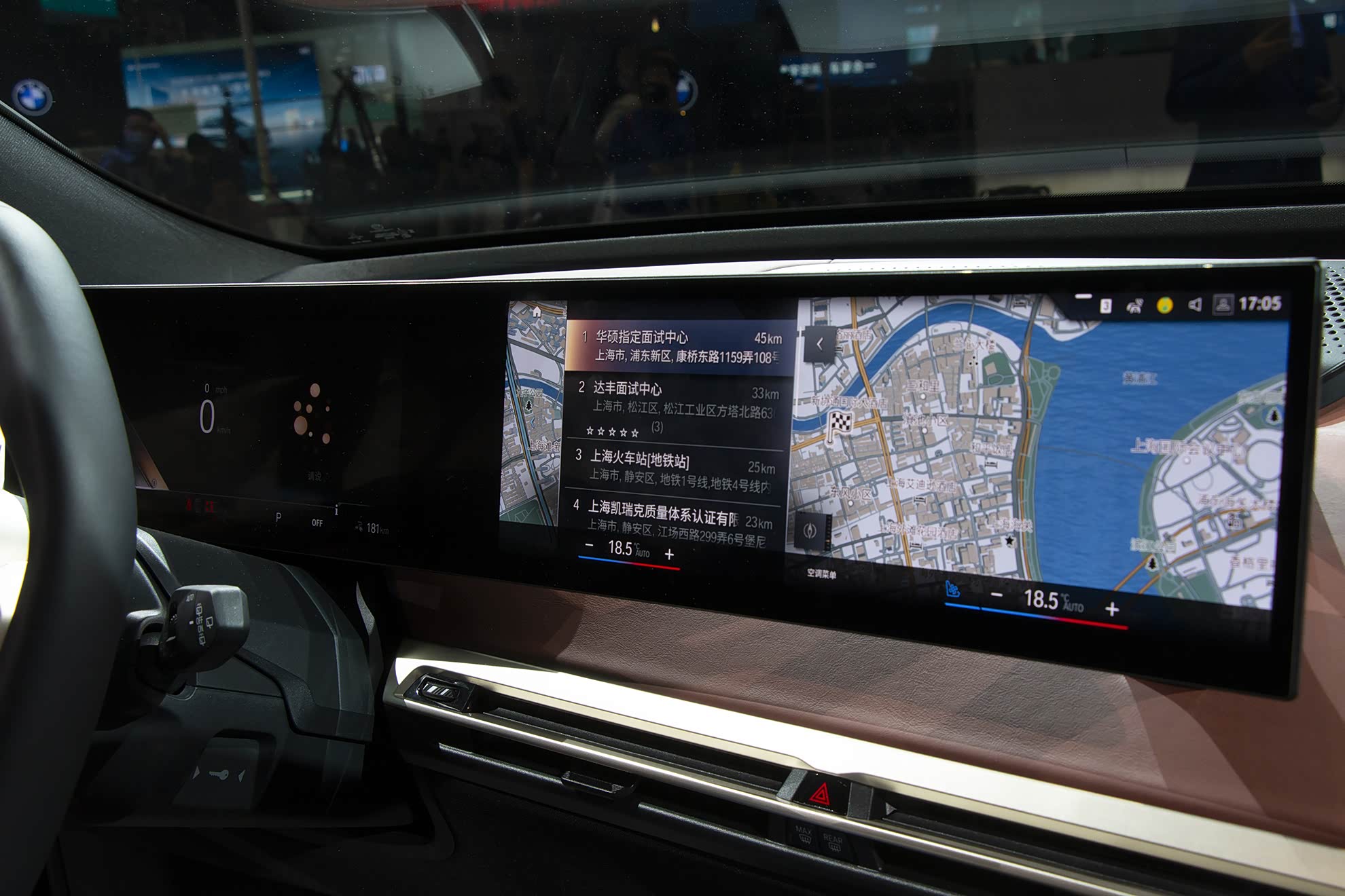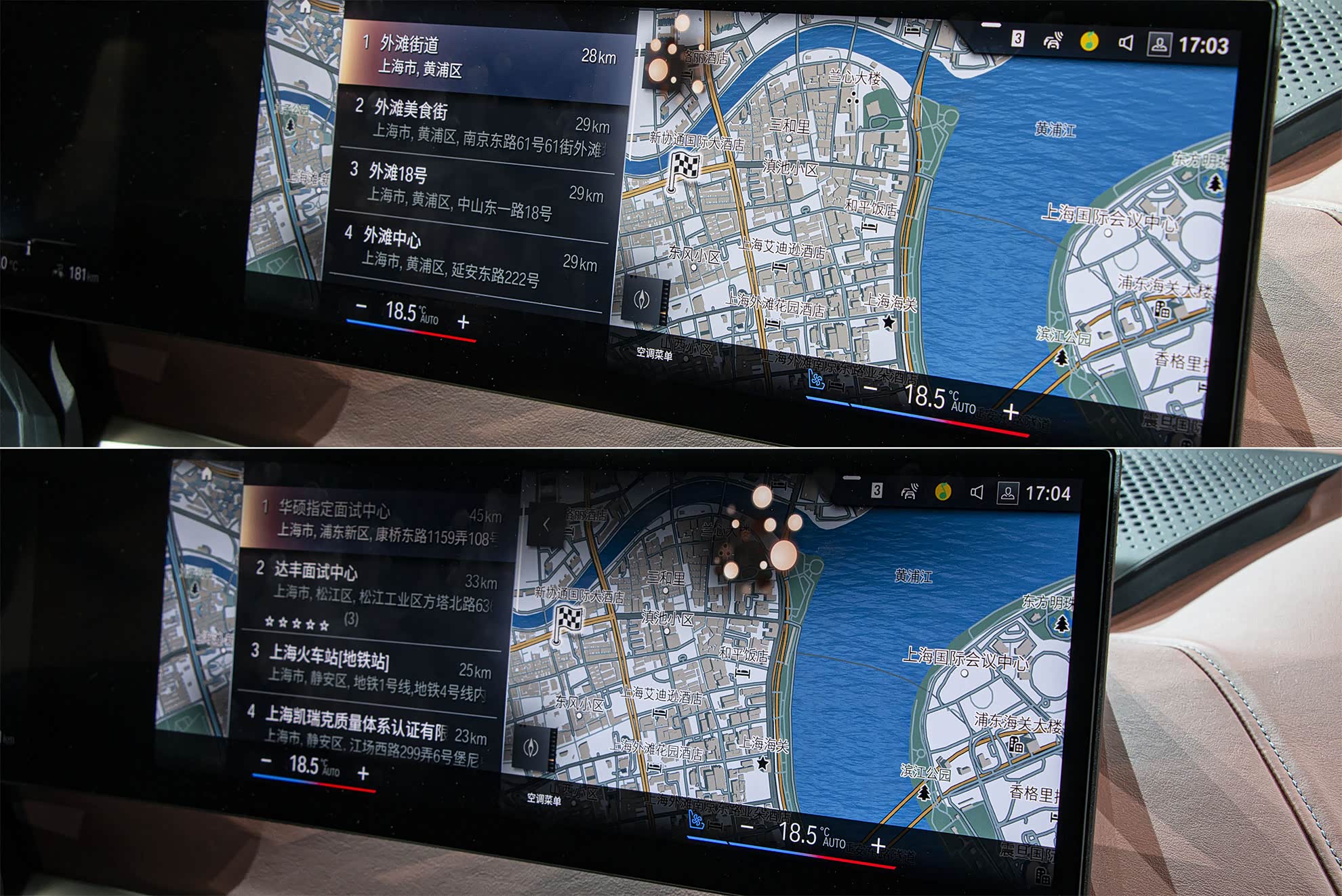 亦保守亦传承,在宝马车上很难发现之前产品上找不到根源的设计,所以iX的曲面屏看着不如奔驰EQS的“超屏”那么震撼,可iDrive8.0与MBUX Hyperscreen却有相似之处。举个例子,零层级交互这个奔驰上很前卫的概念,也出现在了iDrive8.0的导航卡片上。无需进入导航页,即可多指触控缩放地图,还会有导航回家等快捷键。这是iDrive7做不到的,样式不激进、思路很前沿。
