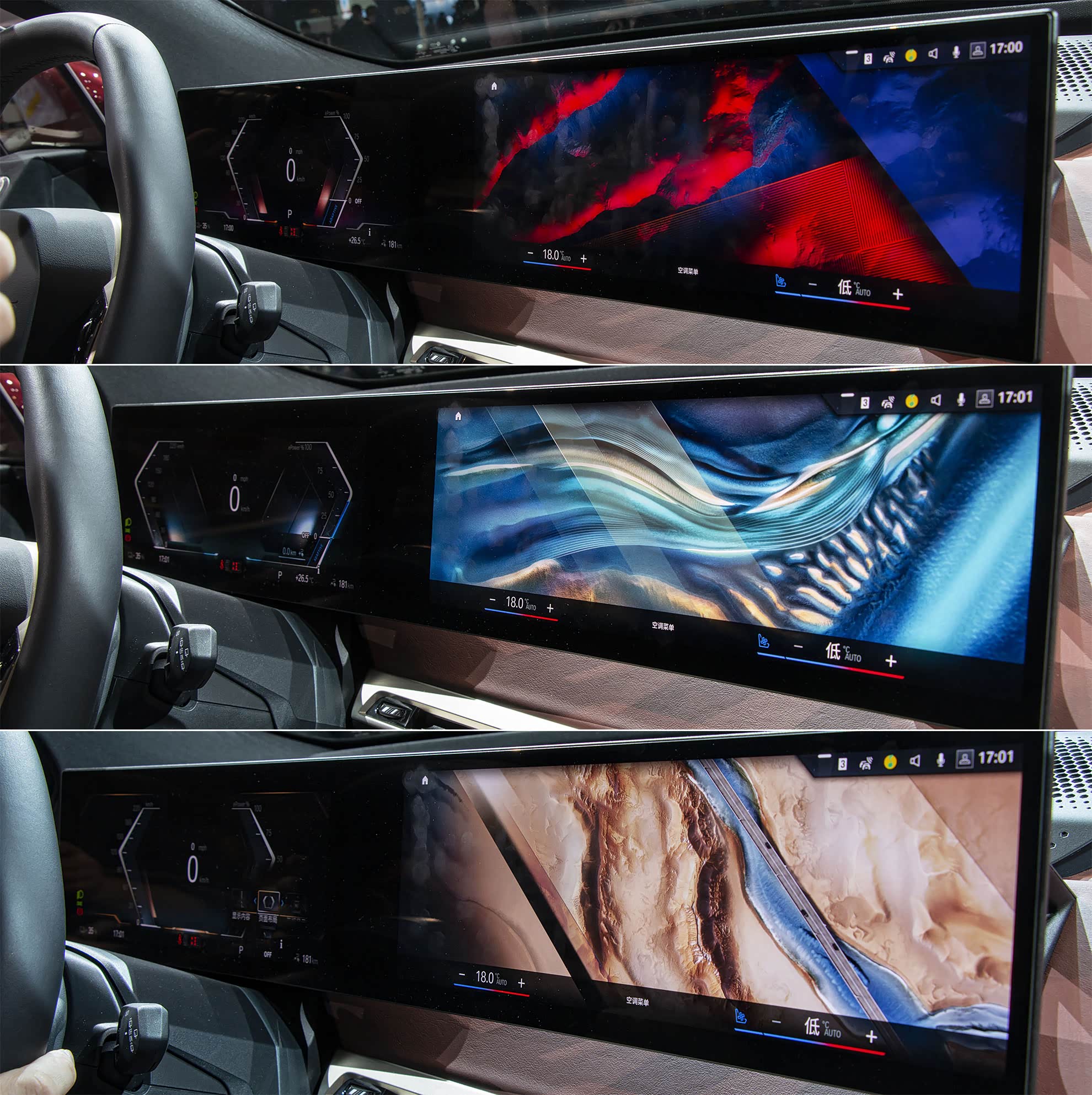 以屏幕数量论英雄不是宝马的风格,从这两块均具备200ppi高分辨率、向驾驶席倾斜的曲面屏就可见一斑。能突出重要信息,屏幕表面还应用了抑制反光的镀膜,少了杂光干扰画质也足够细腻。加上iX采用了全新电子架构,信息娱乐板块有独立的域控制器,算力相对集中,能够保证流畅的触控体验。这次宝马提供的是主题模式,而非单一的驾驶模式。随着模式切换,系统显示样式、配色、氛围灯、声音等方面都会同步变化,并能够根据自己喜好设置。
