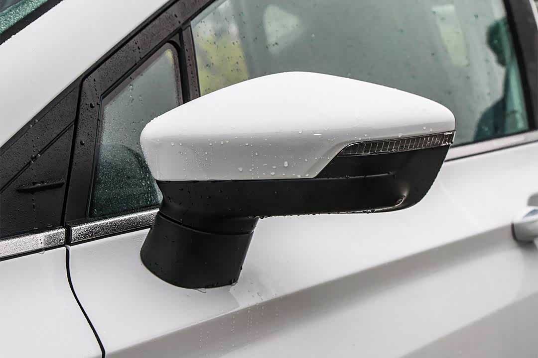 车身侧面,新车的线条设计也更为紧凑,锐利,一条腰线从大灯组处向后延伸至后门把手,有一条下坠的线条变化随后消失,而下方也有一条向上扬的线条,与上方的腰线相互交融。