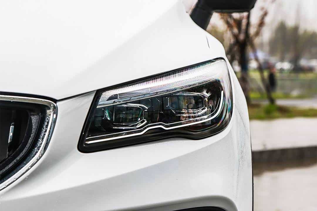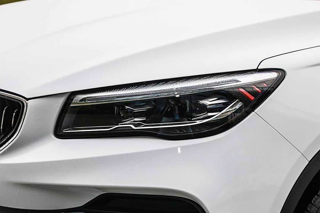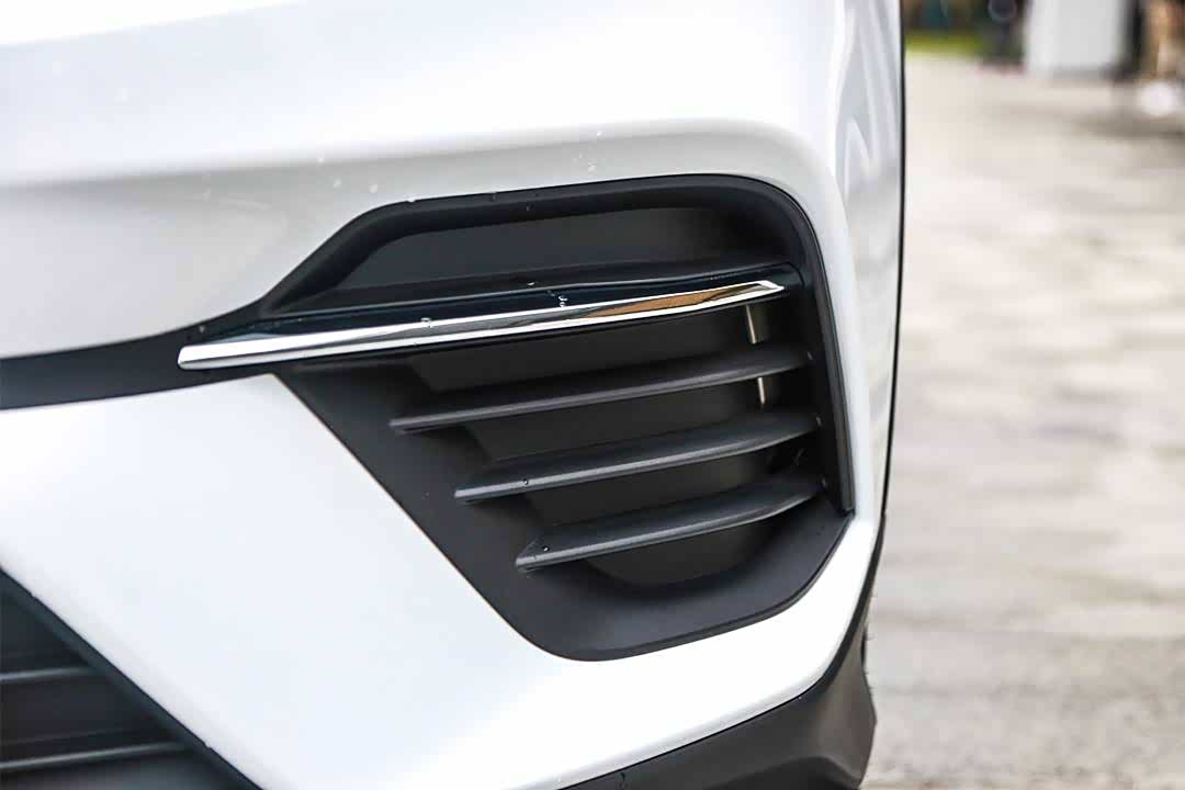 新车大灯组也融入了最新的设计语言,上方的一条LED日间行车灯搭配灯腔内部双透镜式大灯,更加突显科技感。另外,新车下包围两侧的装饰板内部使用黑色饰板,并加入了一条亮银色镀铬装饰,以更加强调车头的层次感与整体感。