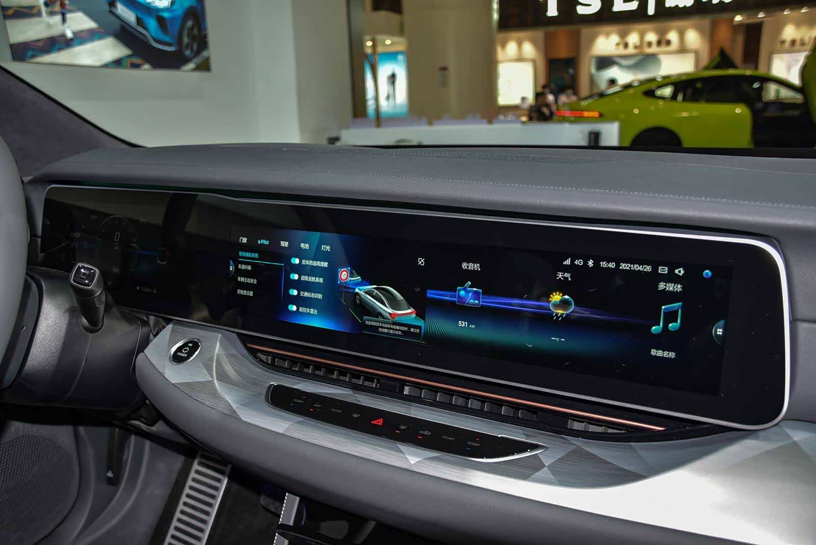 续航里程方面,新车搭载67.3kWh或93.6kWh电池组,NEDC续航里程分别为525km、603km和708km。根据官方数据显示,在快充模式下充电10分钟,续航增加200km,电量从30%充至80%仅需15分钟,而且新车还有即插即充、预约充电、私桩分享等充电方案,无线充电功能也在计划中。