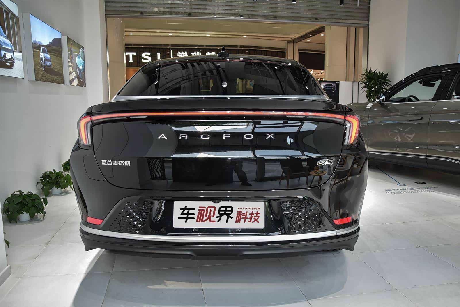 ARCFOX极狐阿尔法S的车尾采用了贯穿式尾灯设计,这也是当下汽车设计的潮流,尾灯一直延伸至后翼子板处,并在两边加入了类似于獠牙般向下的造型,下方的黑色饰板则和前脸中网造型相似,整体呈现出非常活泼的视觉感受,有新生代车企那味了。