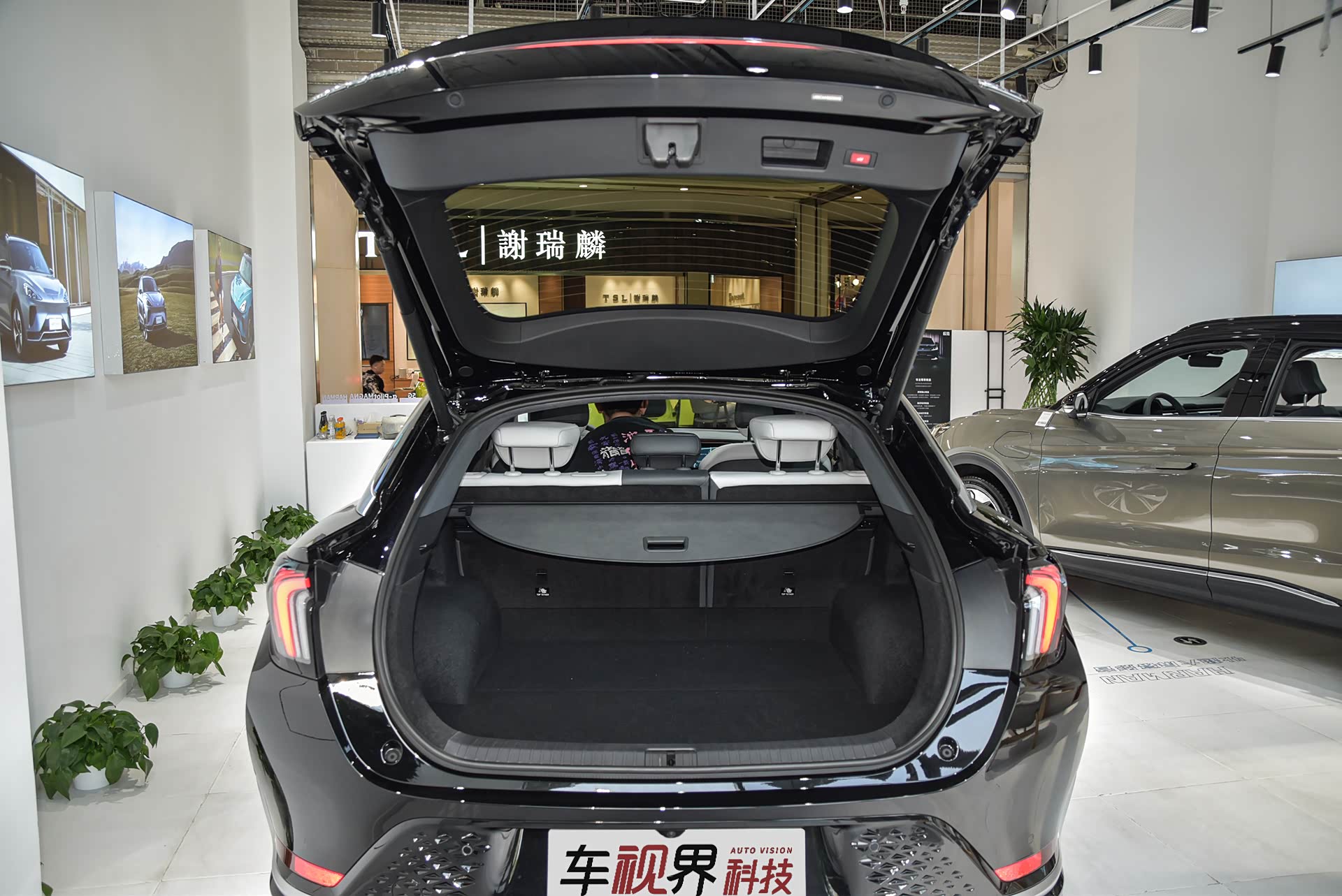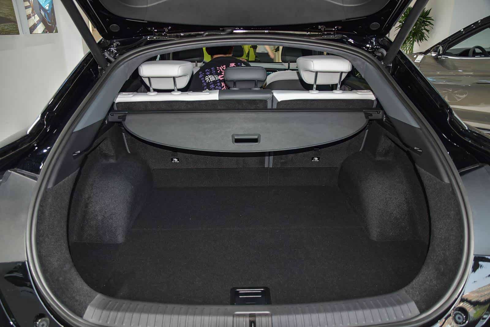 由于车尾是类似溜背式的造型,ARCFOX极狐阿尔法S的后备厢采用了掀背式的设计,开口很大。后备厢内的空间平整,平切进深很大,后排座椅还支持按比例放倒,想要搬运一些大件物品都不在话下。