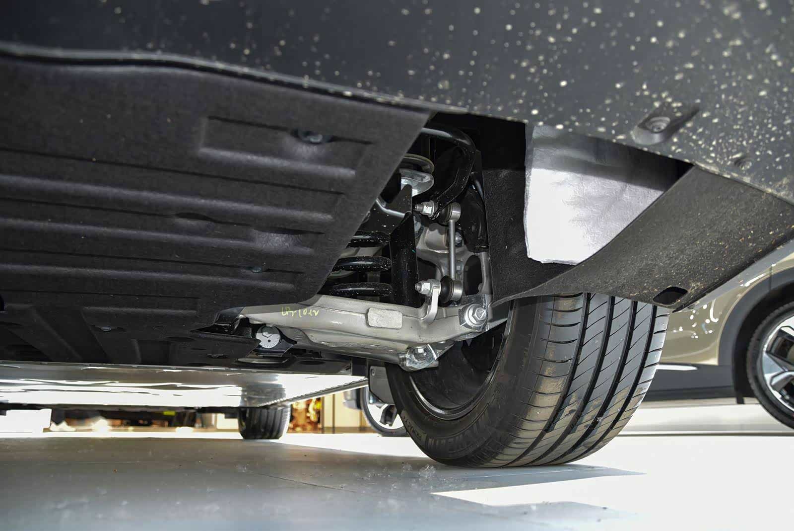 新车车侧看起来十分修长,尾部的视觉重心较高,营造出一种跨界车的视觉感受。一条银色的镀铬装饰沿着车窗上沿从后视镜延伸至车尾上方汇聚,增添了侧面的精致感。车身尺寸方面,新车的长宽高分别为4930/1940/1599mm,轴距为2915mm。实拍车型采用的是19英寸轮圈,轮胎规格为235/50 R19。