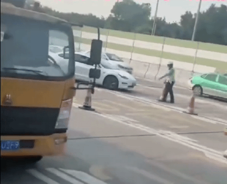 现场视频中还发现有交警在现场进行管制。难道交警也怕了特斯拉这颗“定时炸弹”?