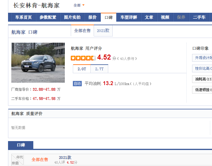 新一代林肯航海家依照不同车型,分别提供两套动力组合供用户选择,分别是高功率2.0T发动机+8AT组合以及2.7T V6双涡轮增压发动机+8AT组合。前者拥有180kW最大功率,峰值扭矩达390N·m,后者最大功率达到237kW,峰值扭矩更是高达500N·m,在汽车之家上查到网友提供的真实油耗分别为13.2L/100km以及10.7L/100km。下面小编就根据这个油耗的表现给大家分析下林肯航海家的用车成本。