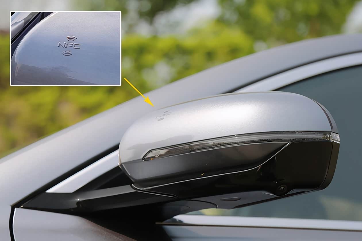 另外,宋PLUS EV具备一个自主品牌常见、而合资品牌几乎没有的功能,就是这个集成在后视镜上的NFC电子感应钥匙,只要是车主授权过的手机,就可以在不携带钥匙的情况下仅凭手机来完成解锁、启动车辆的功能,算是真正意义上的无钥匙进入。