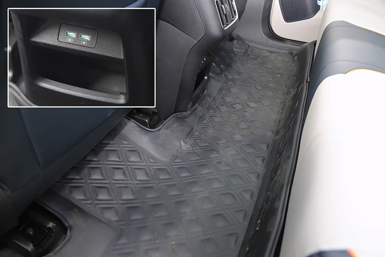 另外就是中控台下方的储物槽,尽管这里的开口并不算大,但是却提供了两个USB接口和一个12V电源接口,而且里面也进行了防滑处理,具备一定的实用性。