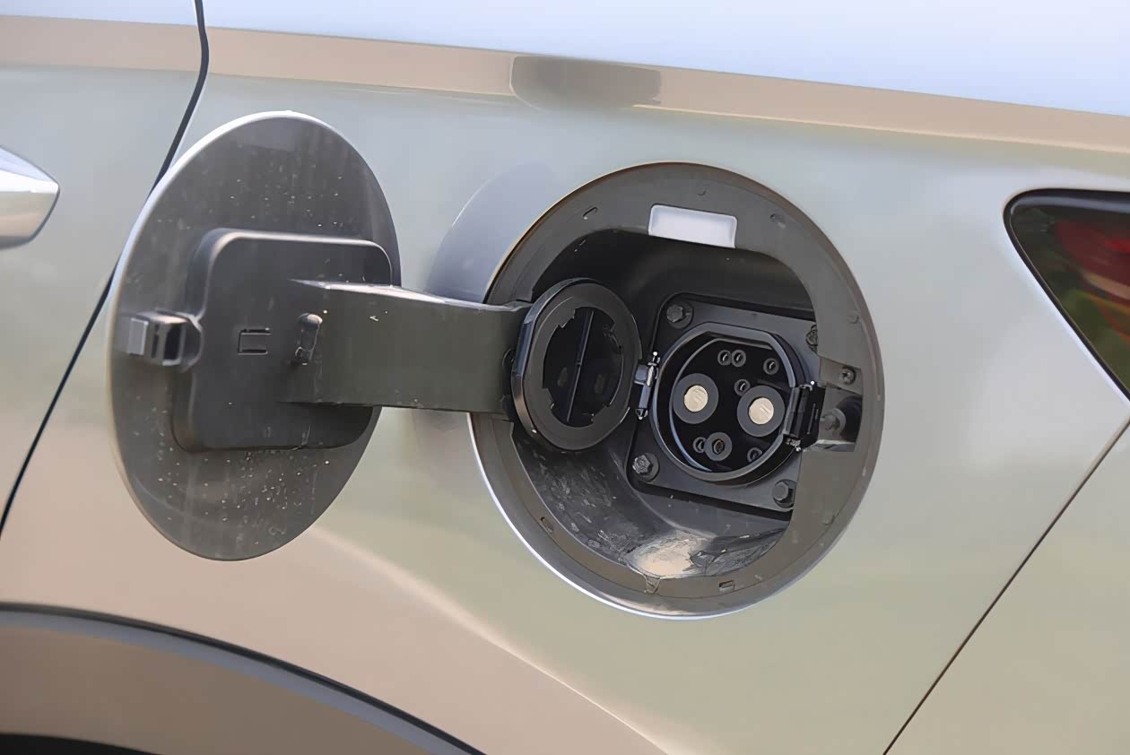 宋PLUS EV的车身侧面与另外两个版本基本上没有区别,不过该有的配置和功能却也一样没落下,比如它全系标配了后排的深色隐私玻璃,后翼子板两侧分别布置了直流快充(左)和交流慢充接口(右)。