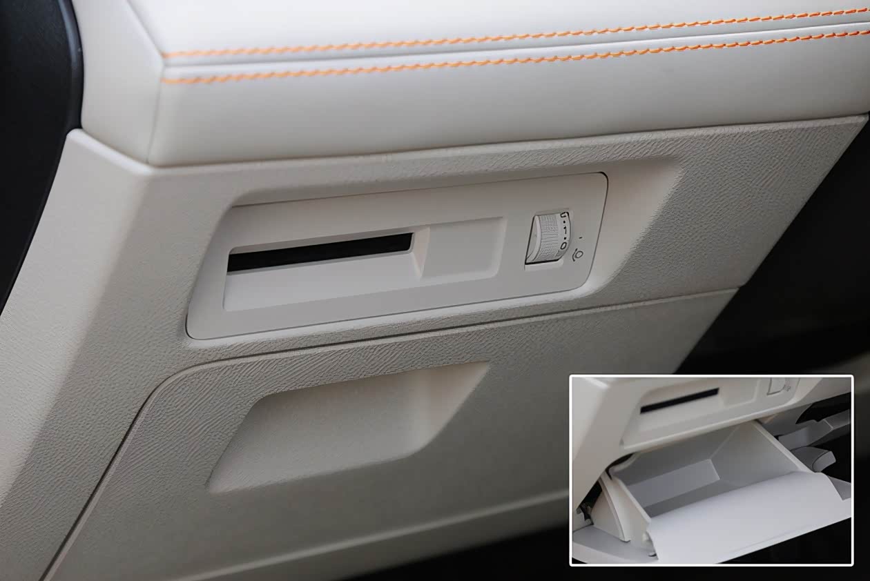 储物空间方面,常规的位置没什么好说的,该有的都有,反倒是两个不太引人注意的细节做得还不错。首先是仪表台左侧,除了一个小的抽屉盒之外,它的上方还单独设立了一个存放卡片的插槽,用来放置高速通行卡极其方便。