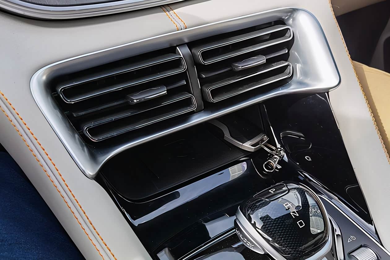 前排的中央出风口周围环绕着一大块银色的饰板,在阳光下能够直射到它的时候,它总是会找到各种刁钻的角度把阳光折射到你的眼睛里,真的有些刺眼。而且它底部的储物格很深,开口又很小,再加上挡把挡在半路,想要拾取里面的物品还真的不太容易,希望能在未来改款时能把这个储物格的开口加大。