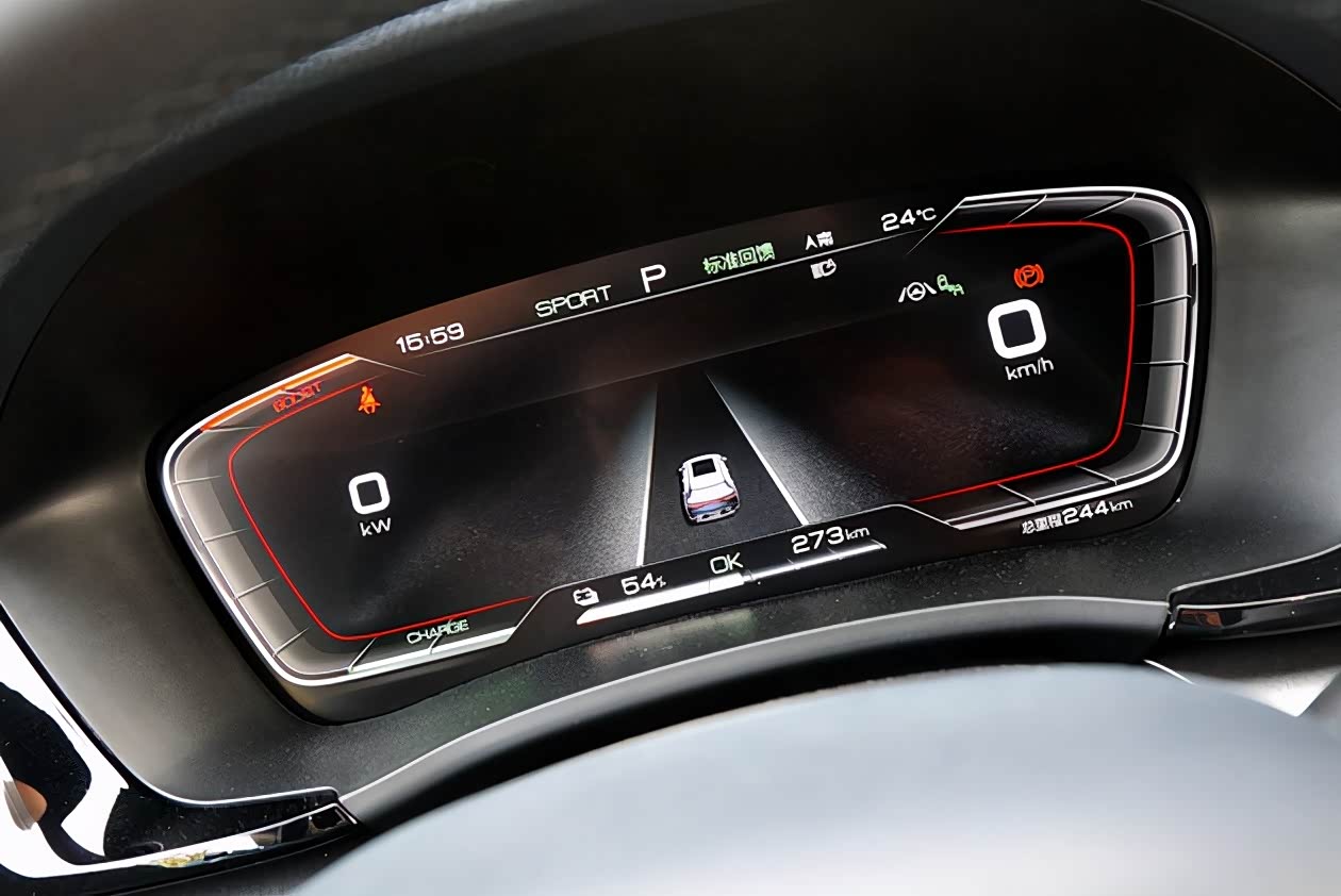 仪表盘为全液晶面板,而且标配了三种不同风格的界面,整体效果都还挺不错的,内容清晰易读,也没有过分渲染华丽的特效。这玩意在合资品牌那儿还属于稀罕货,到了咱自主品牌这里,应该只能算是“入门”吧!对,就这么双标!
