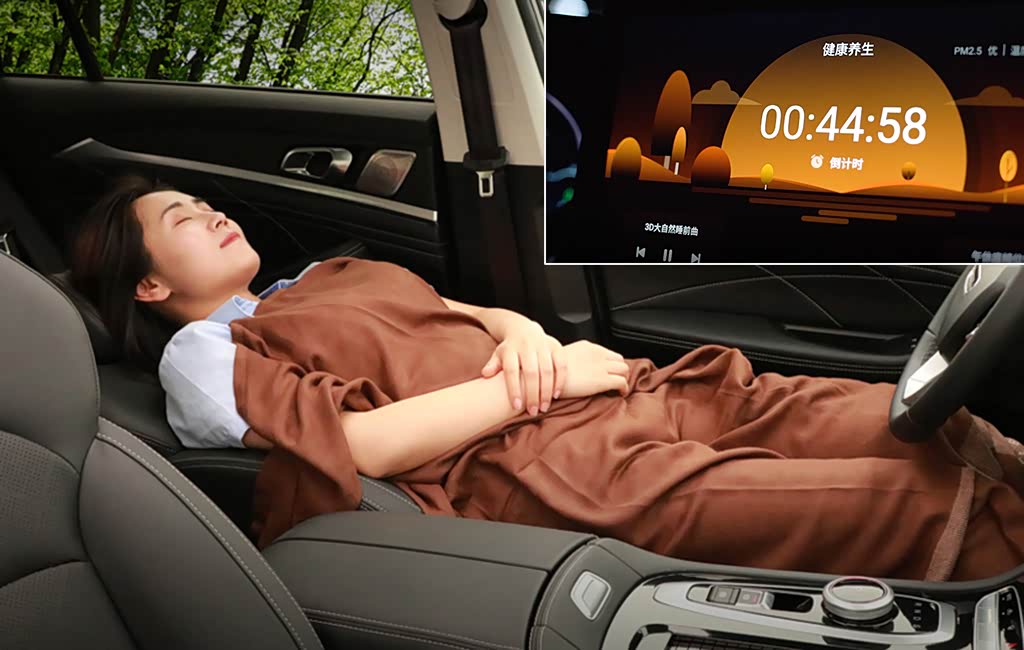 值得一提的是,用户可以通过呼唤小美,说:“我要睡午觉”,创维汽车ET5会进入其首创的健康养生模式,座椅会自动舒展开来,预设的3D大自然睡前曲会响起,而空调的温度也是自动调节到最佳的状态,整个体验宛如头等舱,解决了都市白领午休的问题。