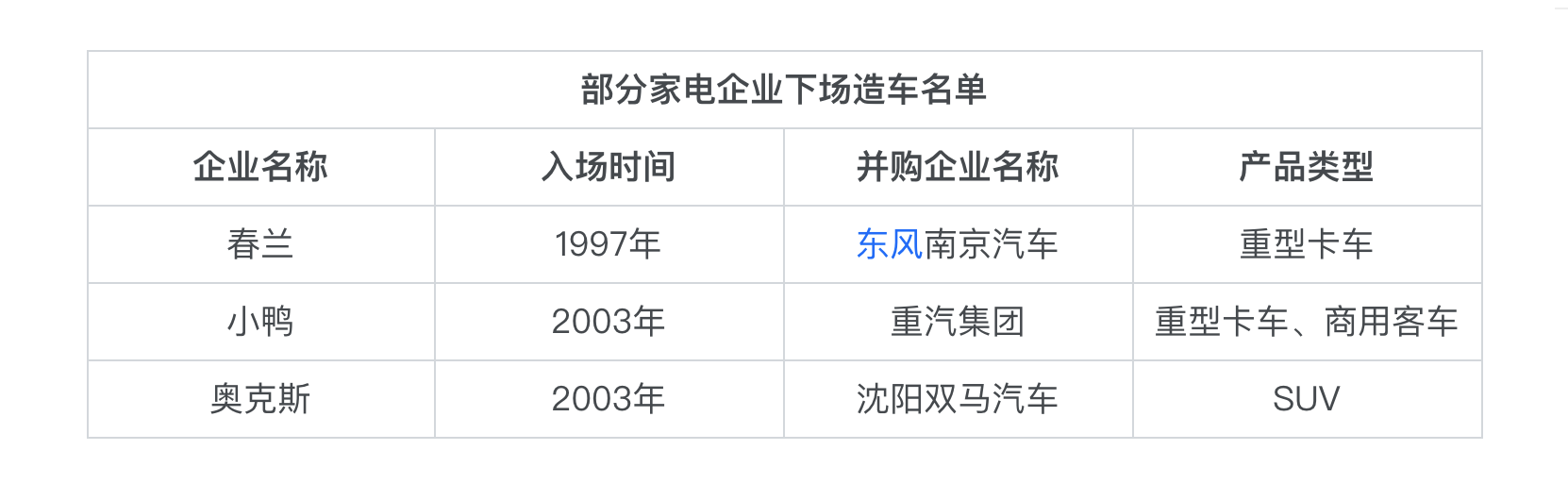 其实,像创维这种家电巨头跨界造车也不算稀奇,早在1997年,“空调七强之一”的春兰,以7.2亿元重金收购了东风南京汽车,生产重型卡车。但在苦撑11年后,最终在2008年铩羽而归。