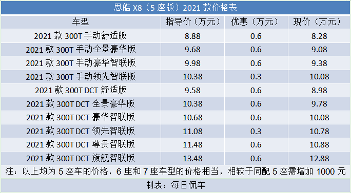 结论:最具性价比的是11.48万元的2021款300T DCT尊贵智联版,可按需选择5/6/7座版本。