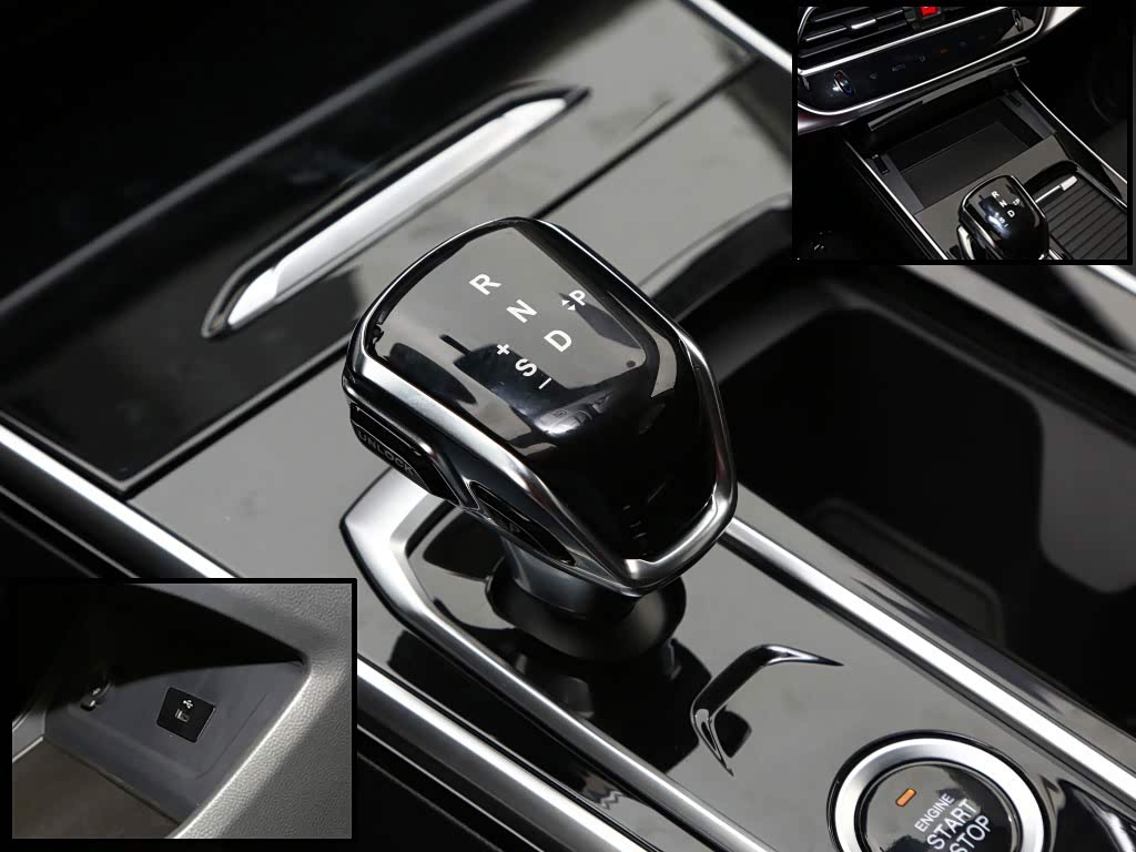 挡杆台采用了提升档次感的平面化布局,前方储物格和右侧水杯架都是封闭式,最大程度地提升车厢的视觉整洁度。小巧的电子挡杆居左布局,用起来更顺手,与挡杆台整体风格一致,都是黑色烤漆面板与银色饰条组合,看起来有一定的精致度。挡杆后方设有一键启动、电子手刹和自动驻车按键。挡杆台下方设有开放式出储物空间,内置USB接口和12V电源。
