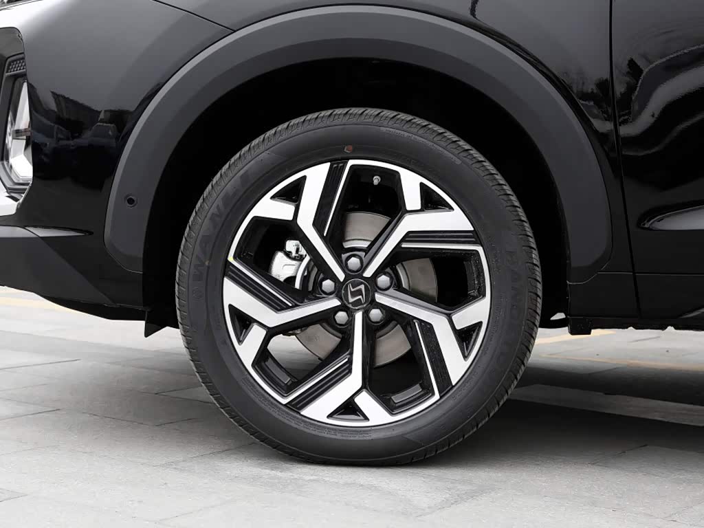 前后车轮提供225/55 R18和235/50 R19两种规格,对应个别入门车型和高配车型。五辐式的雪花造型轮毂非常独特,黑银双配色也提升了档次感。轮胎匹配的是万力RANGETOUR SUO27系列产品,性价比高,在耐磨和静音性方面也有一定的追求。