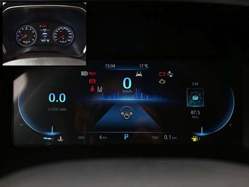 10.25英寸全液晶仪表盘UI界面有一定的科技感,但仅在顶配车型出现。其余车型为机械式双圆盘+3.5英寸单色行车电脑的组合(如左上图所示)。