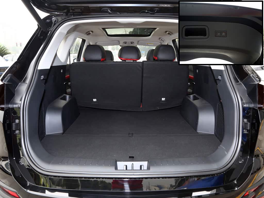 尾厢内部轮拱凸起部分不算高,对于空间的侵占不多,有第三排座椅的车型也可以完全打平,常规容积为418L,应对长途旅行问题也不大。最大空间也拓展至2153L,中排座椅也基本可以放平,容积非常可观。另外,这台顶配车型配备了电动尾门、感应尾门和尾门位置记忆功能,配置上比较齐全。