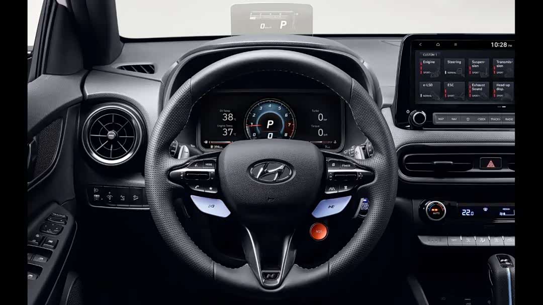 但这还不止,更有意思的是Kona N的方向盘上有一个红色按键,只要按下它,就能激活“N Grin Shift”模式,可以在20秒内再增加10匹马力。