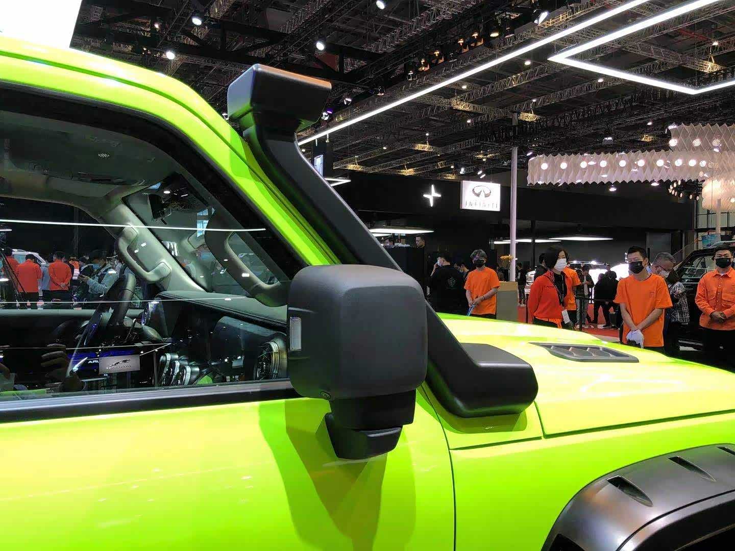车身侧面,坦克300运良改装版整体变化并不大,不过能够看出,新车前后宽出车体的黑色轮眉采用了卯钉结构设计,更加狂野,视觉效果更出色,提升了整车的气场。另外,新车还配备了高位涉水喉,能够更好的穿越涉水路段,轮胎采用了百路驰的AT型越野轮胎,并配备了防脱圈的越野型轮圈,大大提升整车的户外适应能力。