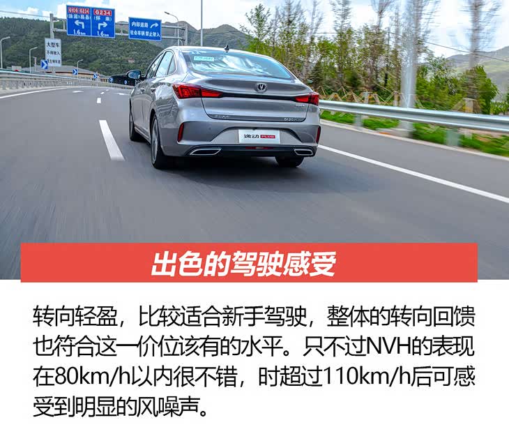 不过2021款逸动PLUS在NVH方面还需要提升,车速80km/h以下时,整车的NVH营造的很出色,不过车速一旦超过100km/h的话,车内会感受到明显的风噪声,这一点还需要进一步优化。