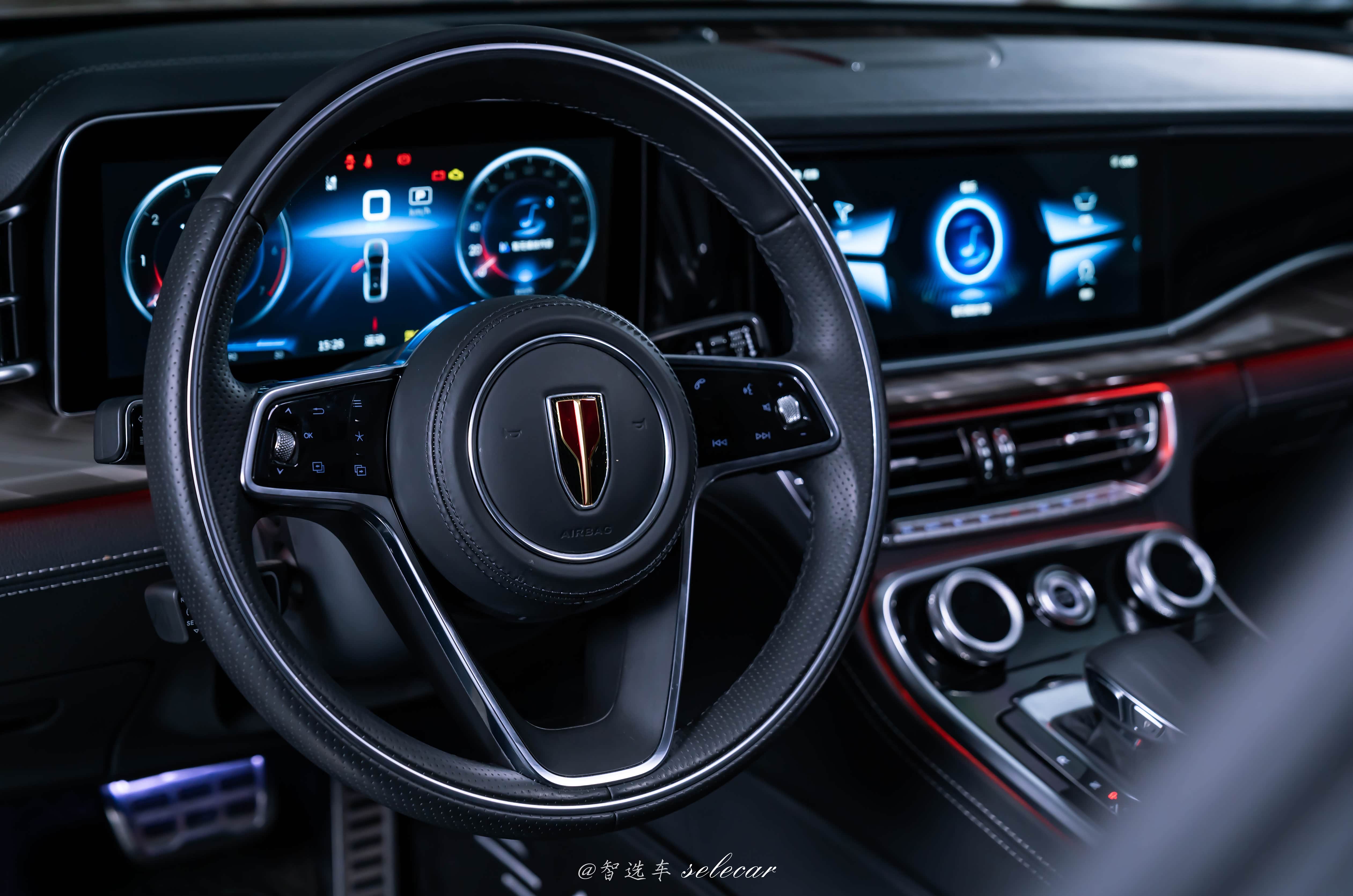 红旗H9的内饰也尽显豪华,机盖上延伸进来的“中轴”一直触及到后排的中央扶手。车厢内部诸多元素的设计同样别具匠心,像是随笔写意的悬浮中控、若隐若现的山水纹理等,均诠释出“浩雅中正”之美。