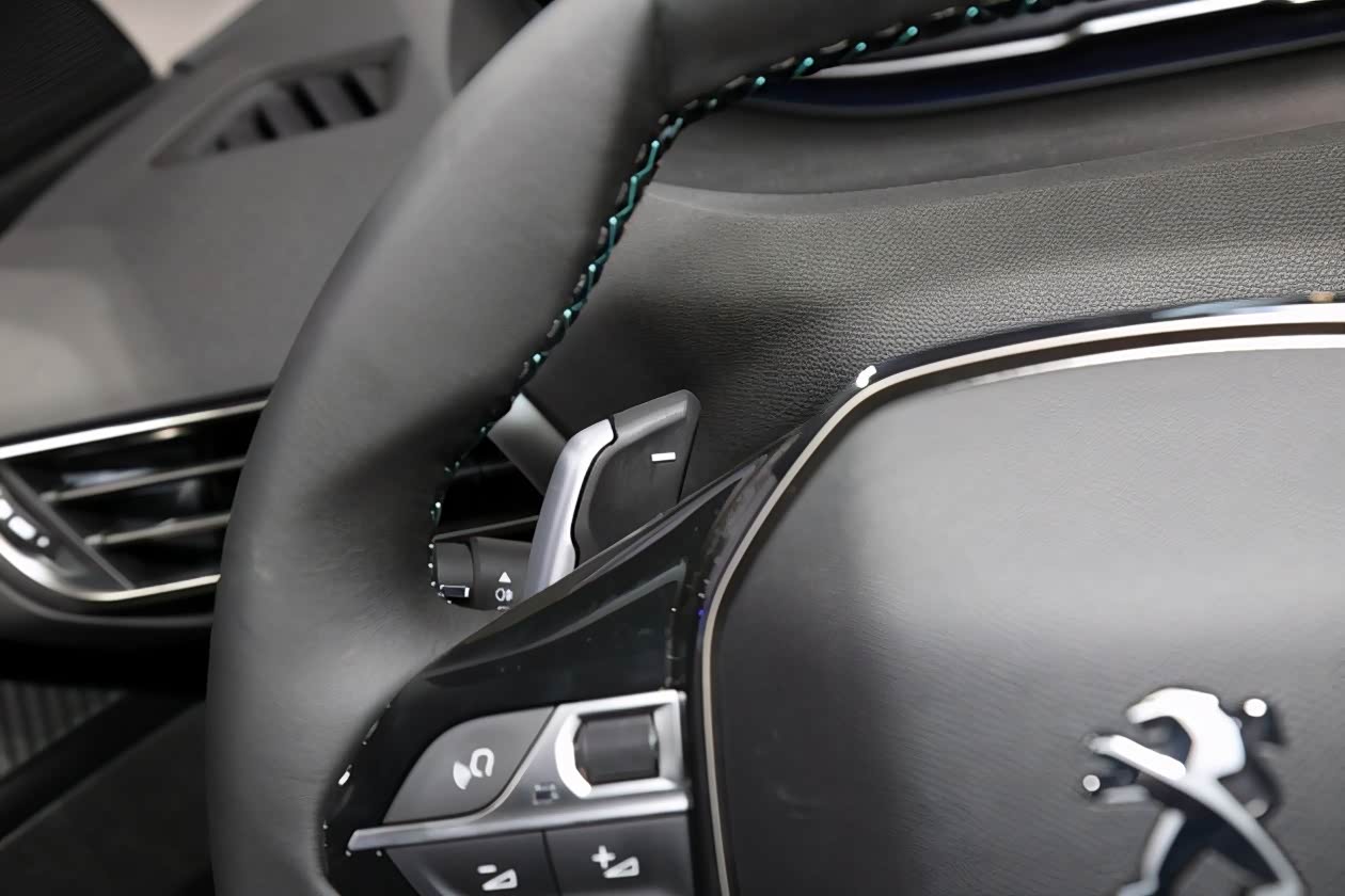 内饰方面,配备了尺寸更大的10英寸液晶屏幕,车机也搭载了标致最新的Blue-i 2.0智能互联系统,新增了在线导航和在线音乐等扩展功能,还采用了小巧的双辐方向盘,换挡拨片采用了不随方向盘转动的设计。中央屏幕下方负责车机功能与空调调节按钮被以机械方式保留了下来。新车依旧采用了小巧的游艇式换挡杆,挡把前方布置了一块无线充电面板及USB接口。挡把后方则是传统的电子手刹及驾驶模式按键,高档感十足,这样的内饰设计也是把该车显得极为科幻富有未来感。