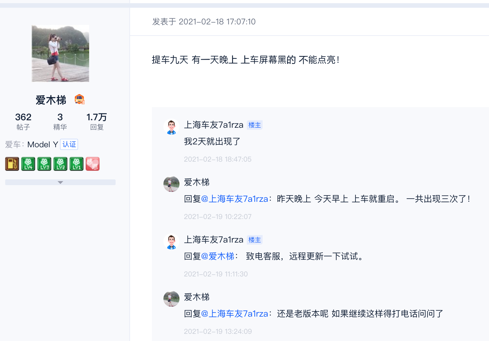 特斯拉的车友给出的建议是强制重新启动,比如同时按下方向盘2个滚轮几秒后就会重启,从而恢复正常,也可以停车熄火再启动。
