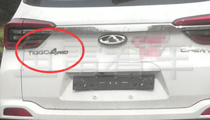 与此同时,我们还能注意到右侧出现了CHERY标识,需要说明的是,国内必须用“奇瑞汽车”四个汉字,只有出口的才会用上CHERY字母串,从上面的位置,我们还能隐约看到TIGGO4PR的标识。图片放大后,就可以看到这是一款出口版本的奇瑞瑞虎4Pro。