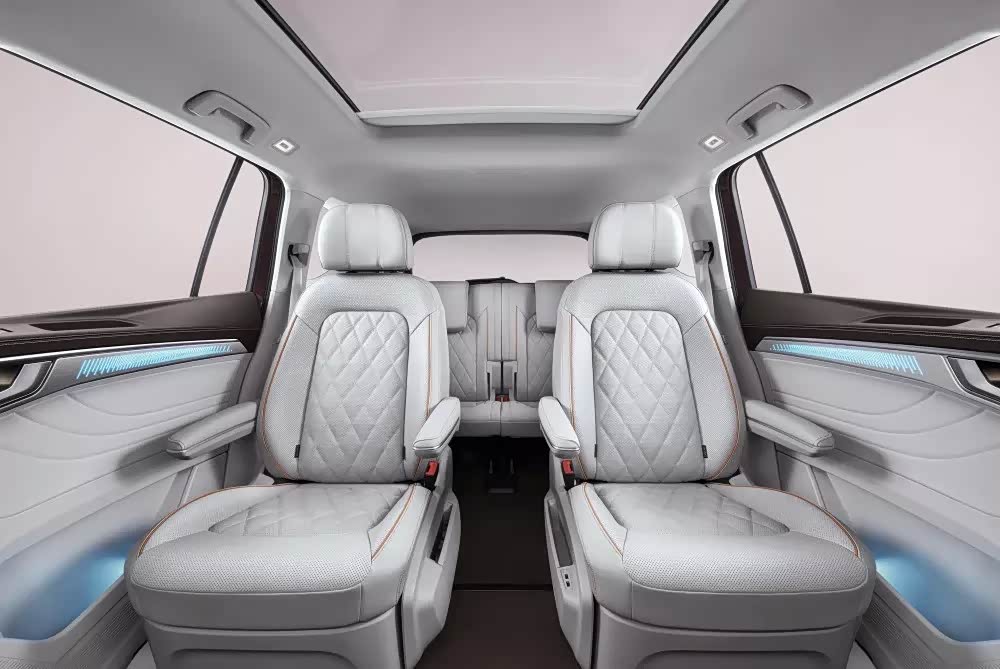 众所周知,MPV出行的乘坐舒适性要在轿车和SUV之上,可它的通过性又不及SUV强。可能揽境看重的正是这个空隙,拿一台正儿八经的中大型SUV,再与MPV车型进行深度糅合。尤其是采用六座布局,二排是两个独立的座椅,留出了一条宽度230mm的过道,比拟主流的MPV车型,方便第三排乘客的进出。值得一提的是,二排座椅的做工并不含糊,包括头枕、靠背和坐垫部分,运用了亲肤的皮质材料包裹,而且用料厚实,特意还采用了菱形缝线点缀,提升质感。