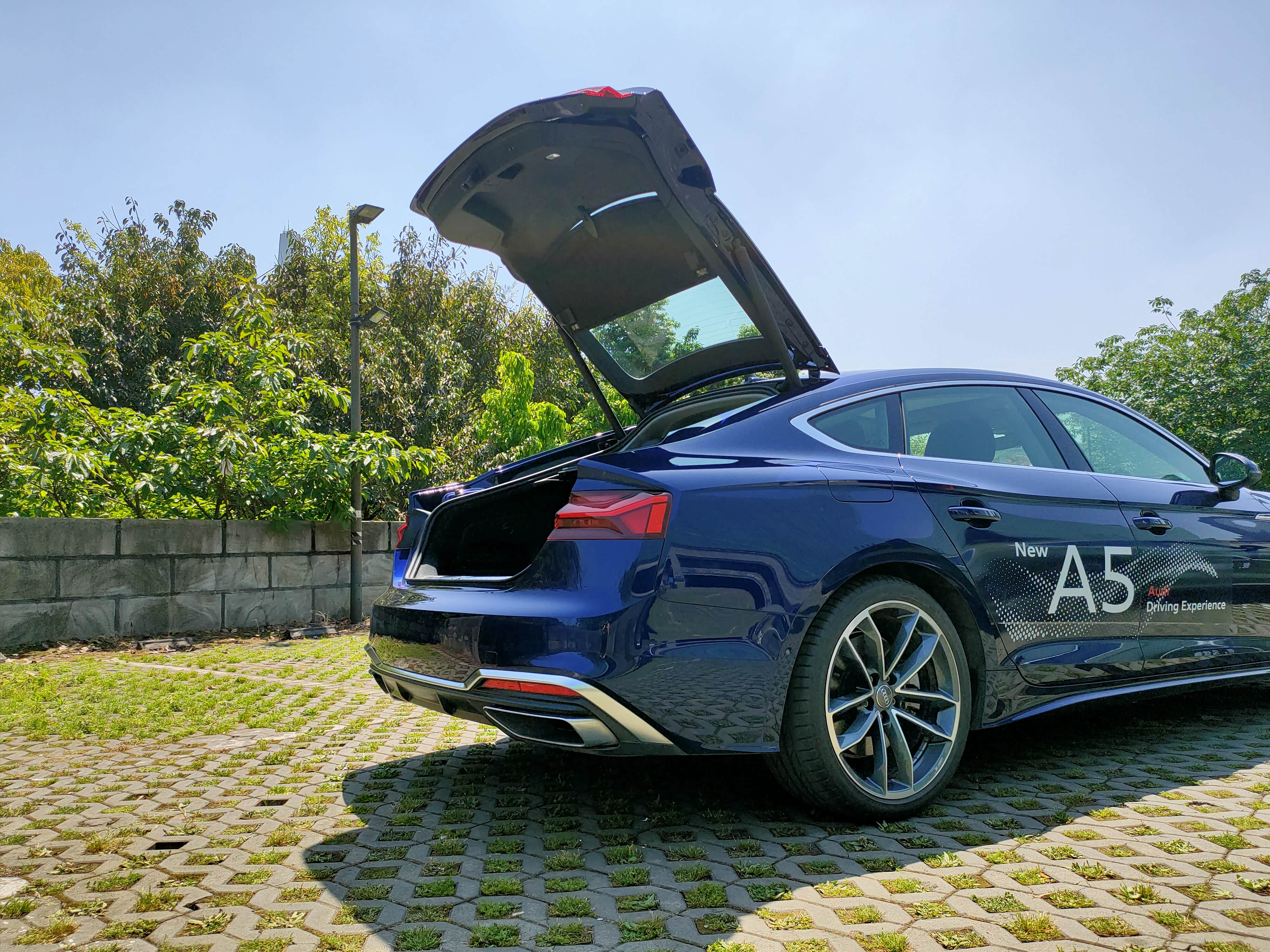 掀背式尾门对于尾箱装载能力的提升立竿见影。我们不用去关心它的容积是几百升,因为只要开口足够大,多数情况下都不用担心东西放不下。在我看来掀背式尾门唯一的bug在于上翘的后端容易磕到顶,不过好在奥迪A5 Sportback全系都标配带记忆功能的电动尾门,如果你自己的车位高度比较矮,一定记得把尾门高度设定得低一些。