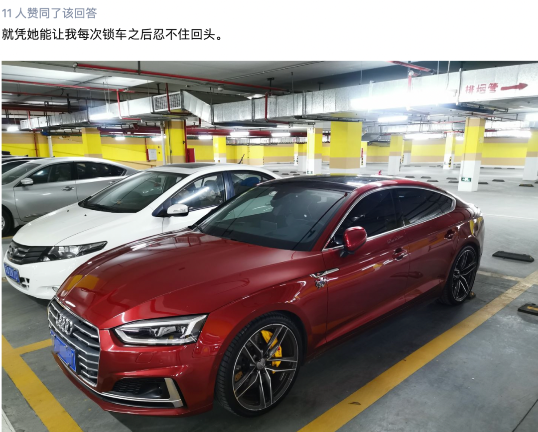 知乎上看到某车友非常感人的回答:就凭她能让我每次锁车之后忍不住回头多看几眼。