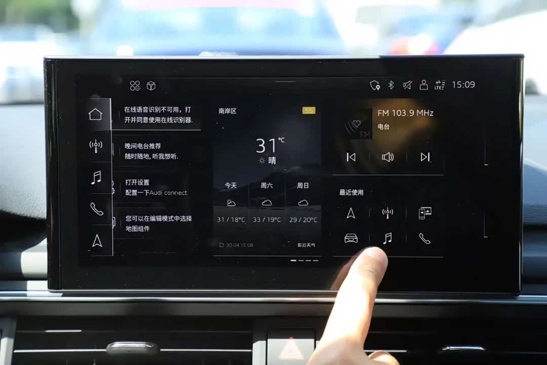 车内延续奥迪MLB Evo平台下中大型车的风格,B&O音响、30种颜色可调氛围灯,直戳年轻人那颗不安分的内心,最大变化莫过于中控大屏尺寸升级为了10.1英寸,标配新一代MMI车机系统,虽然科技感不及A6L等全新车型,但使用感毋庸置疑。