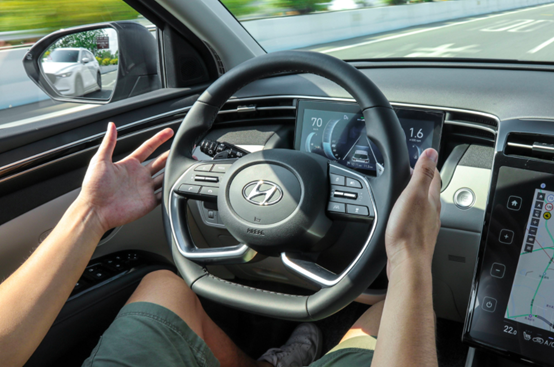 第五代途胜L作为i-GMP平台的首款SUV,几乎配备了现代公司所有的科技配置。例如ADAS功能的Hyundai SmartSense智心合一安全系统,涵盖了包括ACC自适应巡航,车道偏离辅助、防碰撞预警、盲区监测等主动安全配置,以及FCA前方防碰撞辅助、NSCC基于导航智能巡航控制、HDA高速公路驾驶辅助等多达23项同级独有的黑科技。配备了这些黑科技的第五代途胜L已经达到了L2+级的自动驾驶。